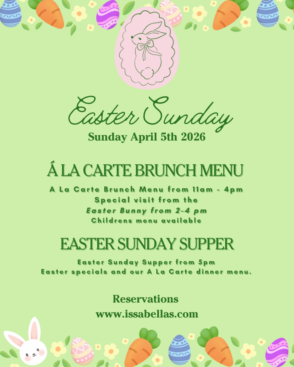 From intimate tables to family gatherings, Easter at Issabella’s is about great food, great company, and effortless celebration.